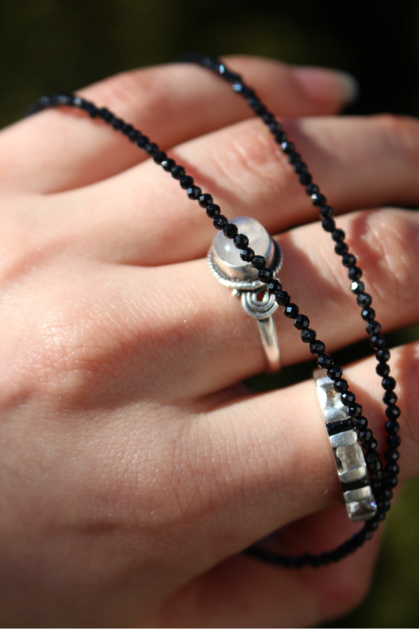 Schwarzer Spinell steht für Stärke und Klarheit – ein minimalistisches, vielseitig kombinierbares Schmuckstück für jeden Tag.